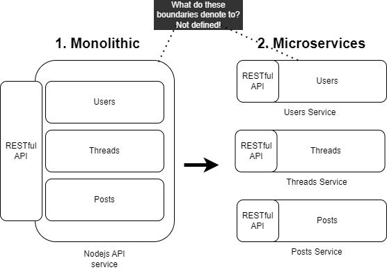 For example, a service that gets refactored from a monolithic could still be implemented in a non-modular way. Consider a Nodejs environment that powers a service.